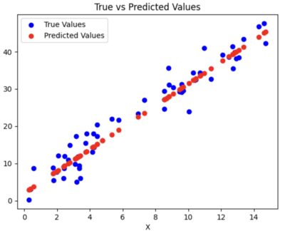 - True vs Predicted Values: Plots the comparison between actual and predicted values.